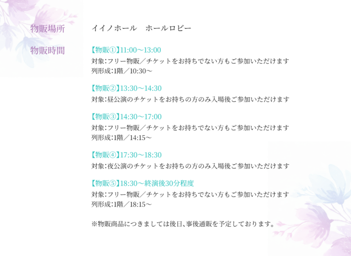 フリー物販の時間はチケットをお持ちでない方もご参加いただけます。